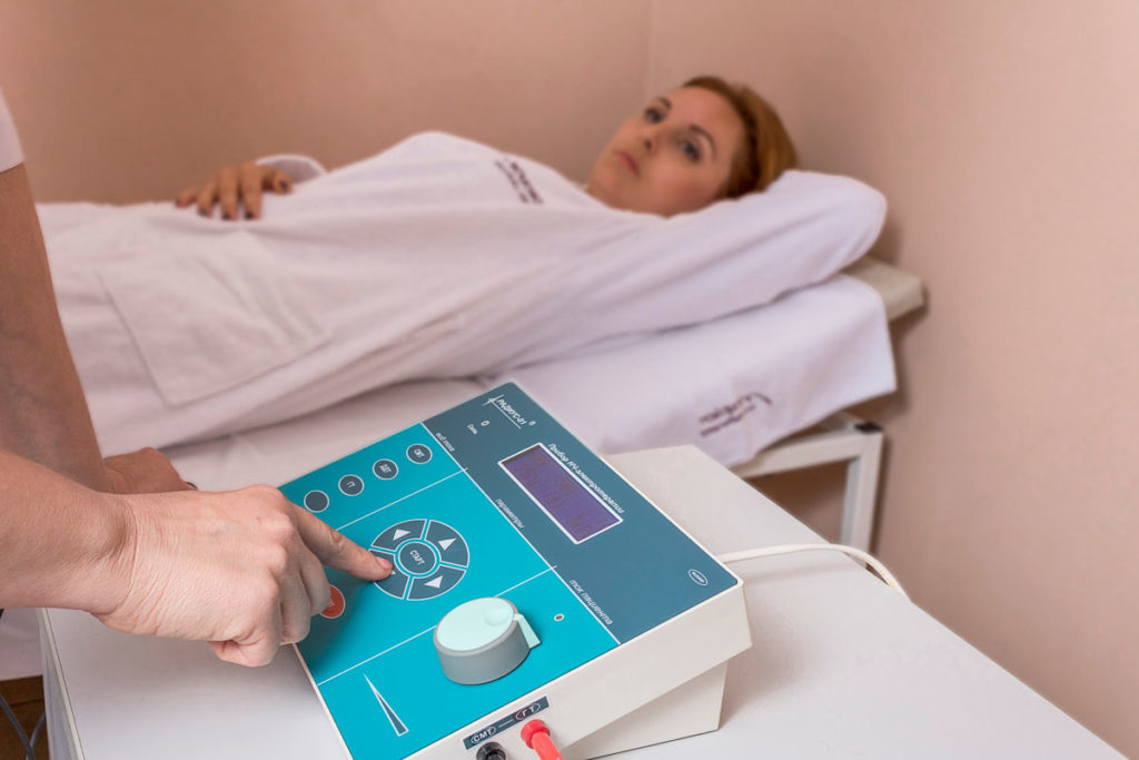 - Електрофорез, гальванізація – процедури, які за допомогою струму дозволяють донести до ураженого органу медичний препарат. Ефект полягає в поєднанні дії струму і лікувального медичного препарату, що вводиться в організм. Досягається знеболюючий, протизапальний і спазмолітичний ефекти та інші.